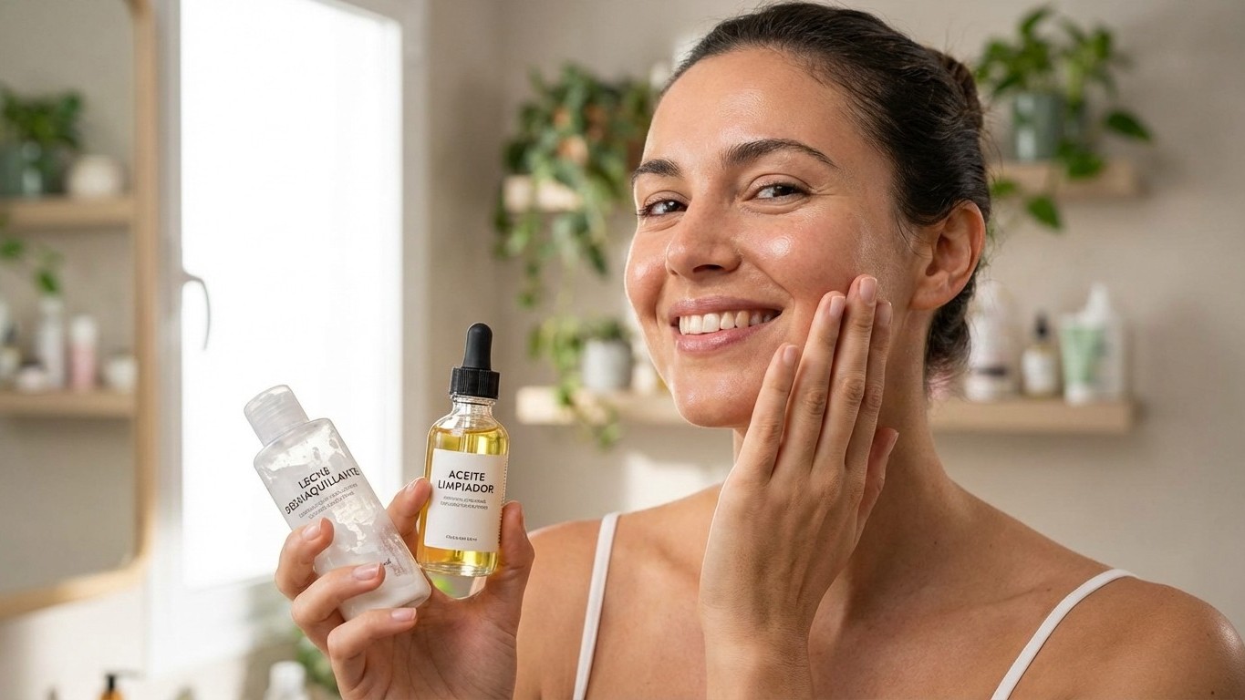 Durante la primera semana sin leche desmaquillante, sustituí mi rutina por un método de doble limpieza modificado: aceite de jojoba para disolver el maquillaje, seguido de un gel limpiador suave con pH equilibrado. Los cambios iniciales fueron casi imperceptibles, pero mi piel dejó de experimentar esa sensación de «sequedad controlada» que había normalizado durante años.
