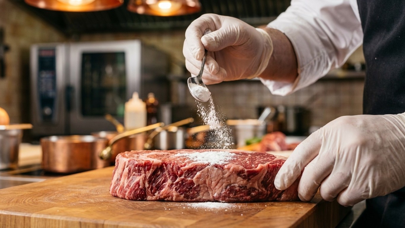 Además, el bicarbonato no solo ablanda las fibras musculares, sino que también ayuda a la carne a retener más humedad durante la cocción. Esto significa que obtienes un doble beneficio: textura más suave y jugosidad superior, dos características que definen una carne perfectamente preparada.